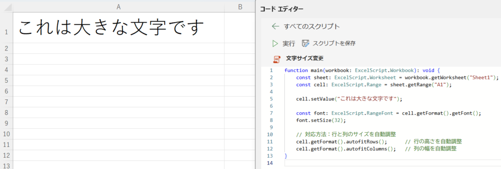 ⇒ 「OfficeスクリプトでsetSize()を使って文字サイズを変更する方法を詳しく解説」をもう一度見る