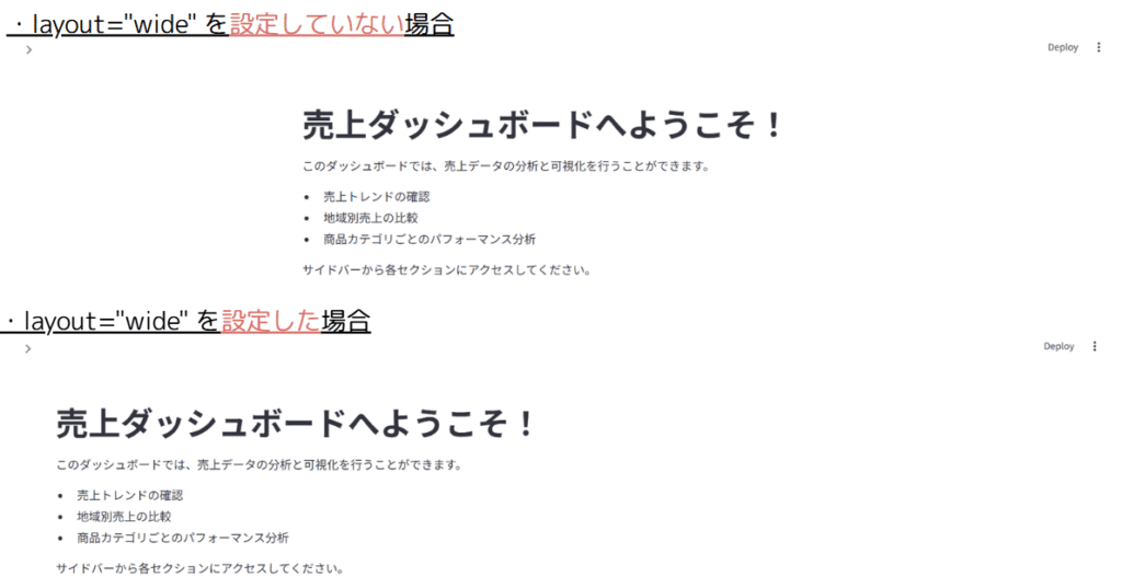 • layout=”wide” にするだけで、画面が広がって見やすくなる